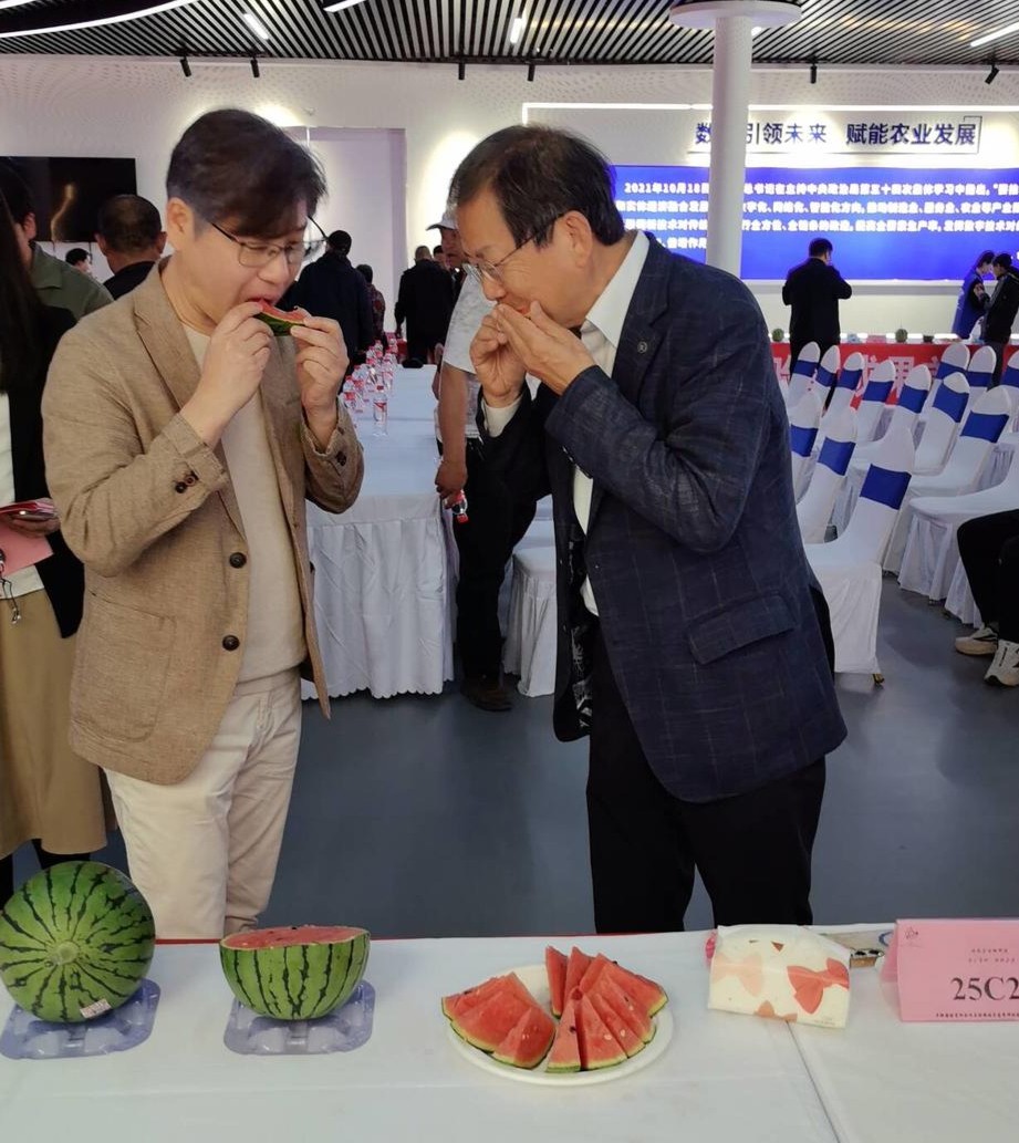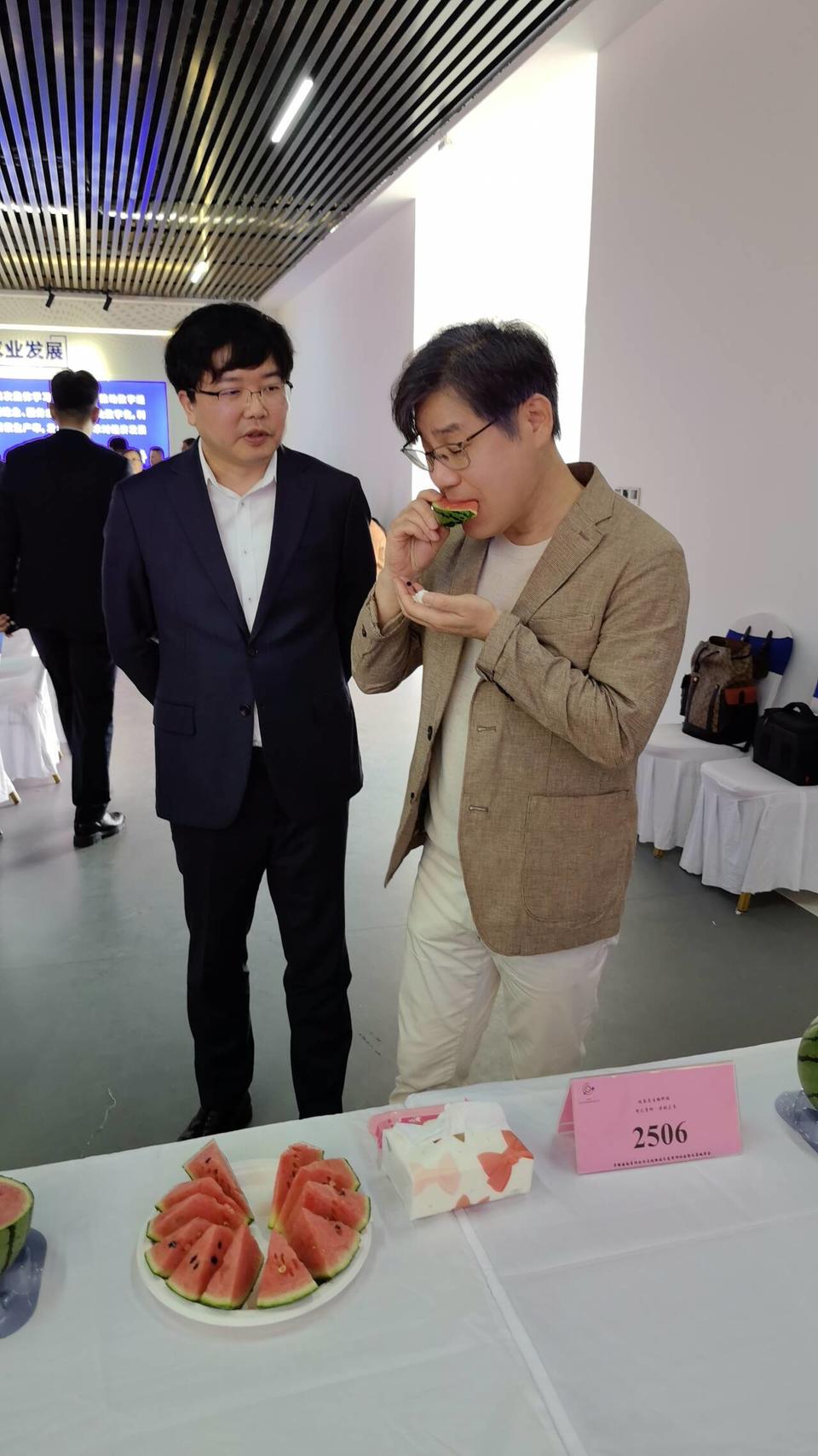 研讨会设置“学术研讨+田间观摩+人才对话”三大模块。国际联合实验室首次公开功能性顺势番茄红素西瓜、耐盐碱嫁接砧木等成果,其营养价值与适应性引发国际种企关注;田间示范区由中韩专家联合讲解,展现跨国合作品种从实验室到产业化的全链条实践。